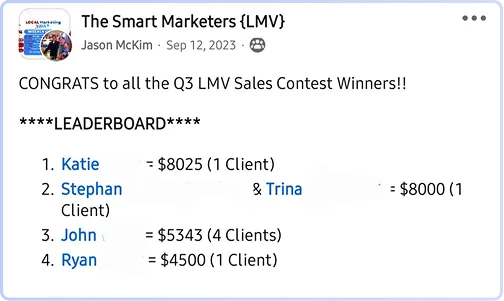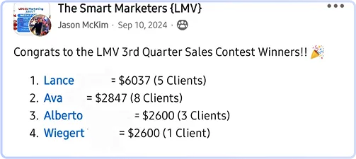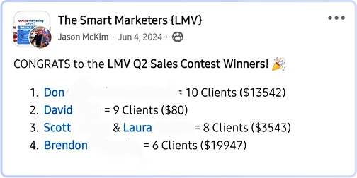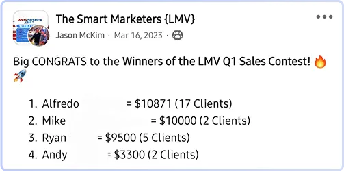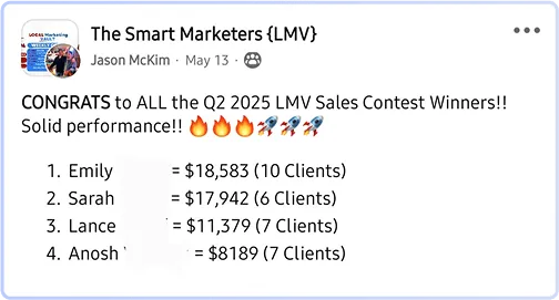 In our coaching program, we run monthly sales contests. Members share exactly what they have earned that month, and the screenshots below are straight from those contests.