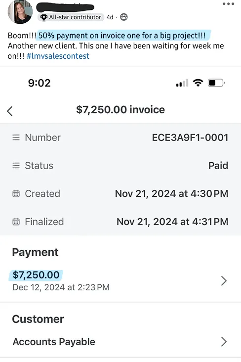 One of LMV’s expert sales mentors. Kate joined in 2019, quickly earned her way into the $10k Club, and has helped dozens of mentees land their first client.