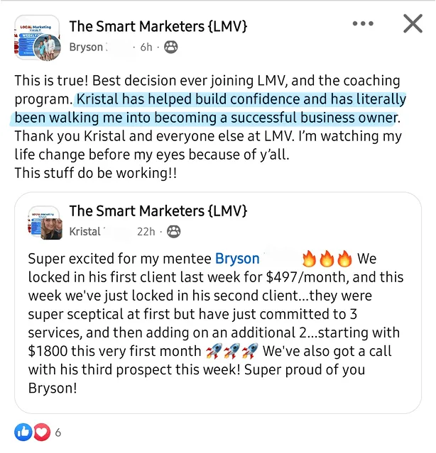 She credits LMV’s clear, step-by-step training, live support, and accountability-focused mentorship for giving her the structure, strategies, and confidence to grow her agency sustainably. Her advice to others: “Don’t expect it to be easy. This is work. But if you’re prepared to put the work in, it will be the best thing you do.”